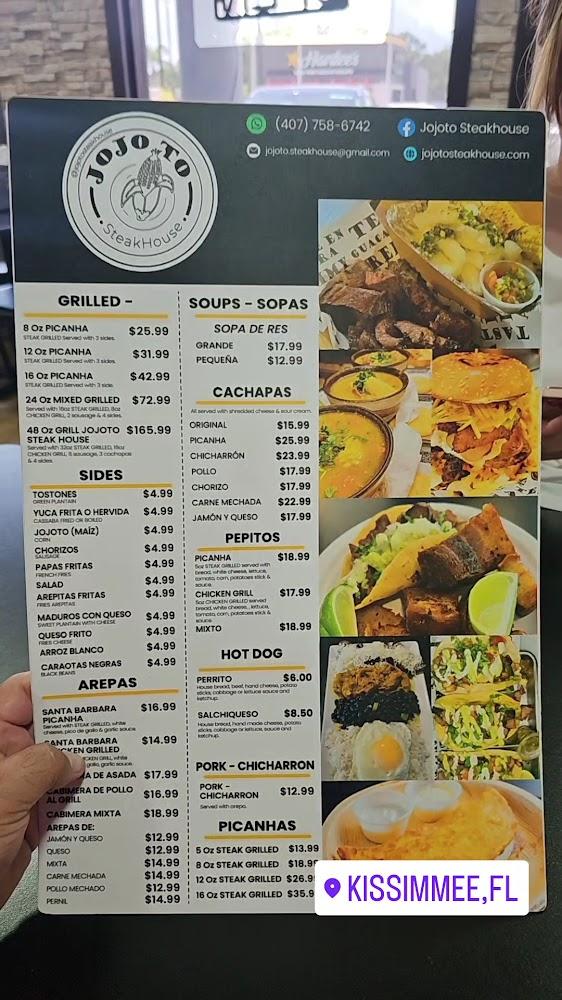 Discover the mouthwatering flavors of Jojoto Steakhouse Restaurant, where our signature Picanha cooked to perfection is just the beginning. Located at 507 W Vine St, Kissimmee, we pride ourselves on crafting a homestyle menu filled with incredible flavors and homemade sauces. Enjoy a relaxed atmosphere perfect for breakfast, lunch, or dinner, whether dining in or taking out. With accessible seating and a variety of drinks, including beer and wine, we cater to all preferences. Join us for a truly memorable dining experience that celebrates local specialties and quick service. Come taste the difference at Jojoto Steakhouse!
