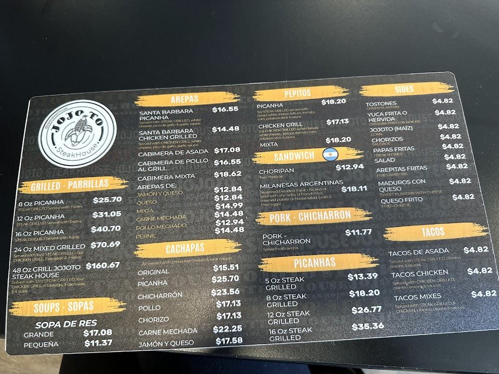 The menu at Jojoto Steakhouse Restaurant offers a delightful array of Venezuelan-inspired dishes. Signature options include picanha, succulent and often grilled to perfection. Another standout is the sopa de costilla, praised for its rich flavor and comforting warmth. Guests can enjoy a variety of side dishes like empanadas and plantains, providing a well-rounded meal.